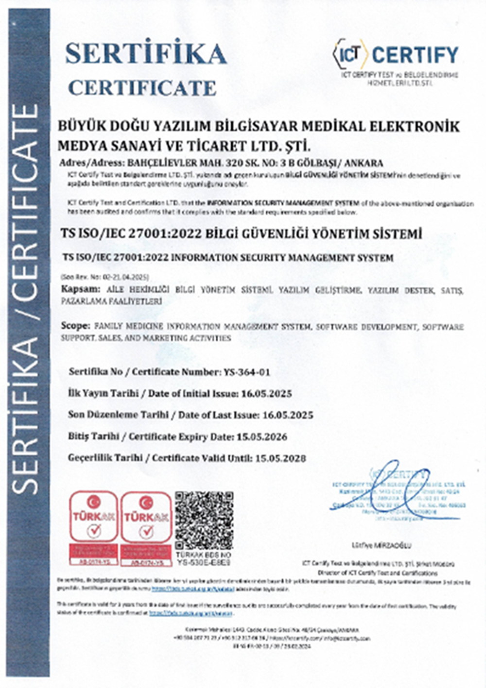 TS ISO/IEC 27001:2022 BİLGİ GÜVENLİĞİ YÖNETİM SİSTEMİ SERTİFİKASI